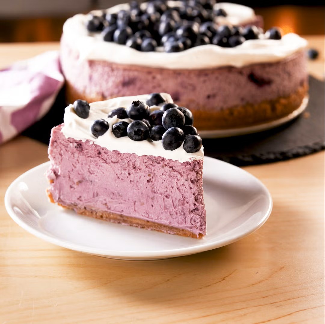 Ingredients - ​​1 cup graham cracker crumbs - 2 tablespoons sugar - ¼ cup melted butterCheese Cake: - 2 / 8oz packages cream cheese softened - 1 cup lowfat sour cream - ¾ cup sugar - 1 teasspoon vanilla extract - 2 tablespoons all purpose flour - 4 eggs - 2/ 12oz bags of frozen blueberries - 1/3 cup blueberry jellyInstructions -​ combine cracker crumbs, 2 tablespoons sugar and melted butter.- pat the mixture into the bottom of a 9” springform pan.- blend cream cheese until soft and creamy; gradually add the sour cream, ¾ sugar, vanilla and flour.- beat in eggs one at a time.- pour mixture over the crust.- bake in 325 preheated oven for approx. 1 hour.- cool and remove from pan, loosen edge with a knife.- place frozen blueberries on top.- melt jelly and spoon over blueberries to glaze.- chill, until ready to eat.Serving Suggestions Serves : 4